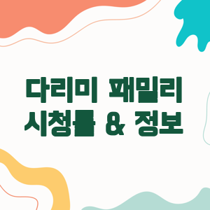 KBS 주말드라마 '다리미 패밀리'의 열렬한 팬일까요? 아니면 아직 이 드라마를 접해보지 않으셨나요? 이 드라마의 시청률 성과와 주요 내용을 자세히 살펴보면, 왜 이 드라마가 많은 사랑을 받고 있는지 알 수 있을 것입니다.