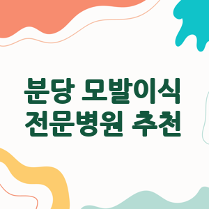 이 글을 통해 분당 모발이식 전문 병원에 대한 이해를 높이고, 당신의 모발 고민을 해결할 수 있는 병원을 찾는 데 도움이 되었길 바랍니다. 이제 당신의 모발 건강을 위한 여정을 시작해보세요!