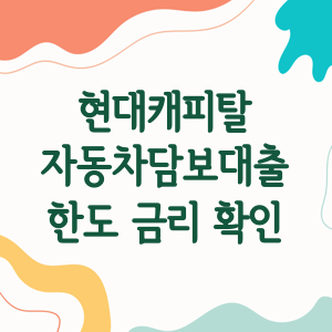 이처럼 현대캐피탈 자동차담보대출은 편리한 대출 신청 과정, 합리적인 금리, 다양한 상환 기간 등의 장점을 제공하여 자동차를 소유한 고객들에게 유용한 금융 솔루션이 될 수 있습니다. 고객 여러분의 재무 상황에 맞춰 현대캐피탈 자동차담보대출을 활용해 보시기 바랍니다.