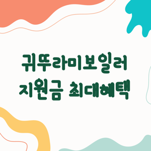 귀뚜라미보일러 지원금 제도를 잘 활용한다면 가정의 경제적 부담을 덜고, 더 나은 삶의 질을 누릴 수 있을 것입니다. 이 제도를 통해 어떤 혜택을 받을 수 있을지 고민해보시기 바랍니다.