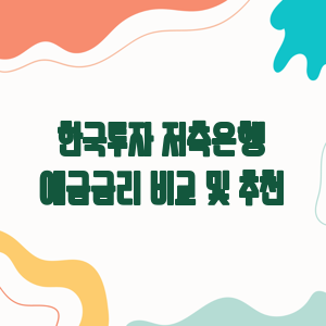 주의사항: 금융 상품의 금리와 조건은 수시로 변경될 수 있으므로, 실제 가입 시에는 한국투자 저축은행에 직접 확인하시기 바랍니다.