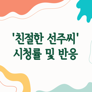 드라마 속 주인공의 따뜻한 마음이 시청자들의 마음을 사로잡았을까요? '친절한 선주씨'의 시청률과 시청자들의 반응은 어떨까요?