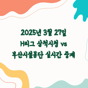 스포츠 팬 오늘 우리가 주목할 경기는 무엇일까요? 바로 2025년 3월 27일에 펼쳐질 H리그 삼척시청 대 부산시설공단의 경기입니다. 이 경기는 어떤 의미를 가지고 있으며, 어떤 재미와 감동을 선사할지 함께 살펴보도록 하겠습니다.