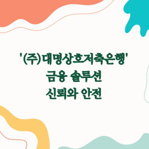 어떤 금융 기관을 신뢰하고 계신가요? 안전하고 믿을 수 있는 금융 파트너를 찾고 계신가요? 그렇다면 대명상호저축은행이 바로 찾던 그 곳일 수 있습니다.