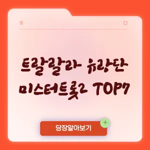 '트랄랄라 유랑단'은 TV조선의 새로운 예능 프로그램으로, 국민 MC 김성주와 가수 붐이 진행하며 '미스터트롯2' TOP7 출신 출연진들이 출연합니다. 이들은 팬들의 사랑에 보답하기 위해 전국을 누비며 역조공 여행을 하는 프로그램입니다. 첫 녹화 당시 비가 멈추는 기현상이 일어나 출연진들이 "대박 징조"라고 말했다고 합니다. 시청률 또한 양호한 편이며, 앞으로 더 상승할 것으로 기대됩니다.